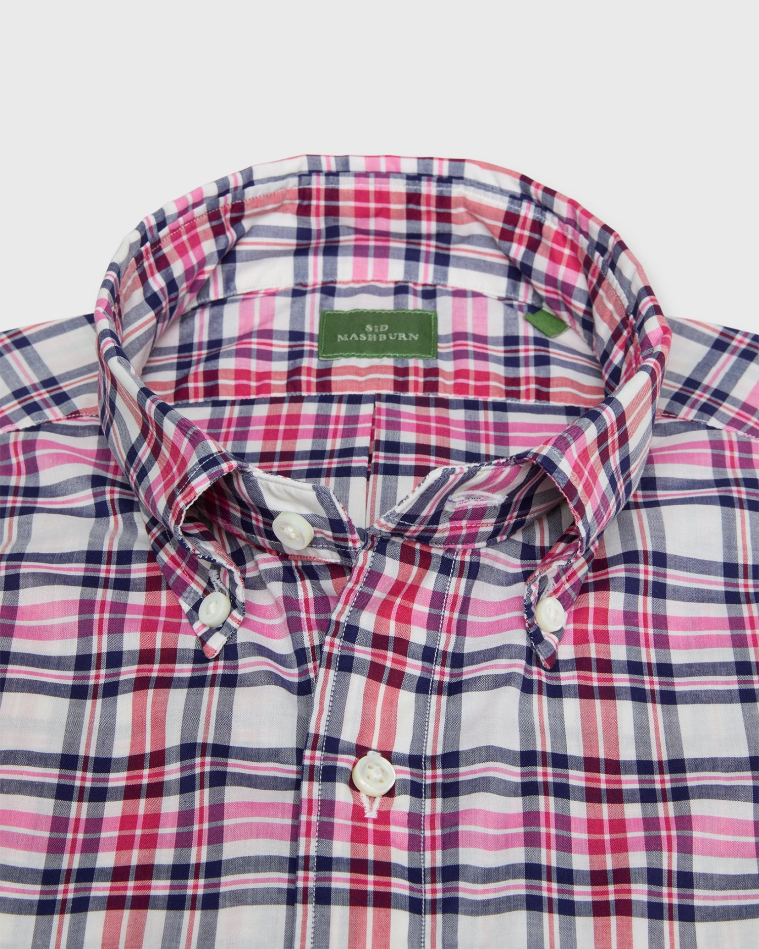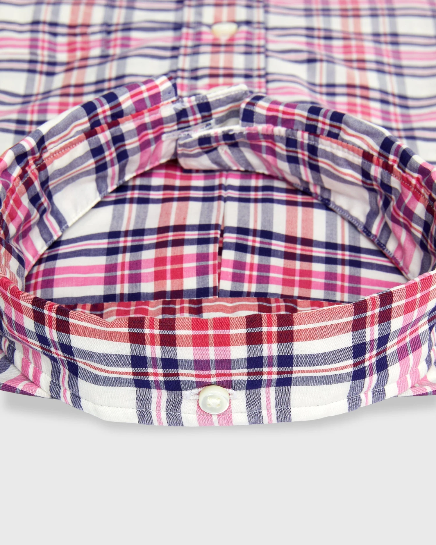 Button-Down Sport Shirt In Berry/Red/Navy Plaid Poplin