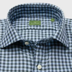 Fine, crisp, 2ply/2ply Italian poplin makes for a perfect tuxedo shirt. This one’s got a spread, not winged, collar and narrow pleats on the bib for a slightly more modern take on the traditional silhouette… without going too far off road. Best to keep things pretty classic with black tie. There’s a button-out placket, which means you can easily keep our buttons on (3.5mm Trocas shell) or replace the top four with your favorite studs. You can also go sans cummerbund à la Casino Royale. Either way is great. As always, the cut is slim but never skinny with a high armhole for mobility, made with single-needle stitching, 22 stitches/inch, and flat-felled seams.