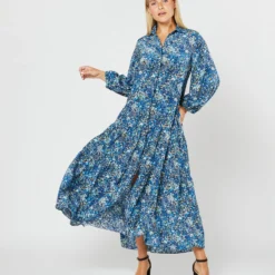 Isla Shirtdress In Orange Autumn Floral Crinkle Cotton