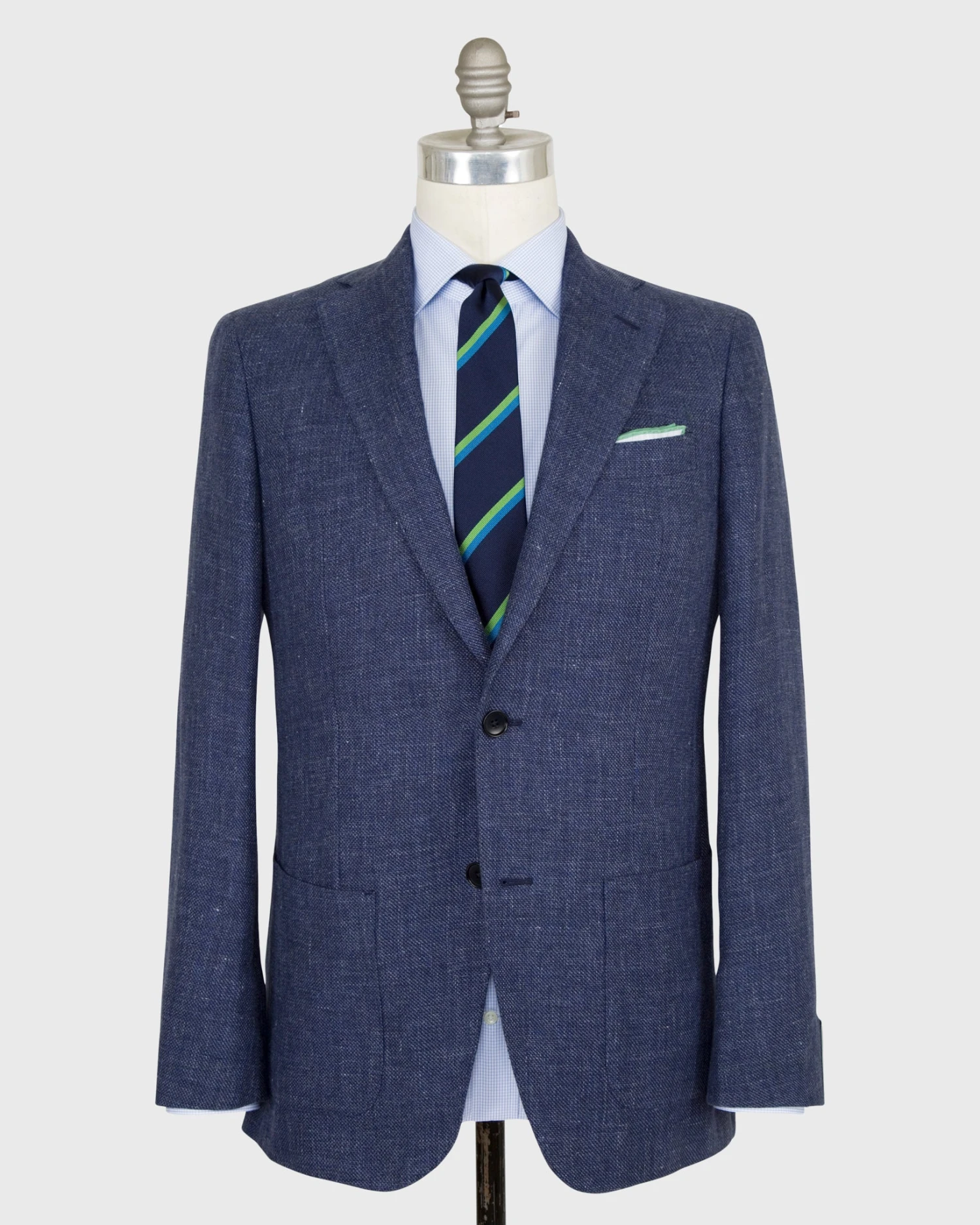 Kincaid No. 2 Jacket In Blue Mix Linen/Wool Hopsack