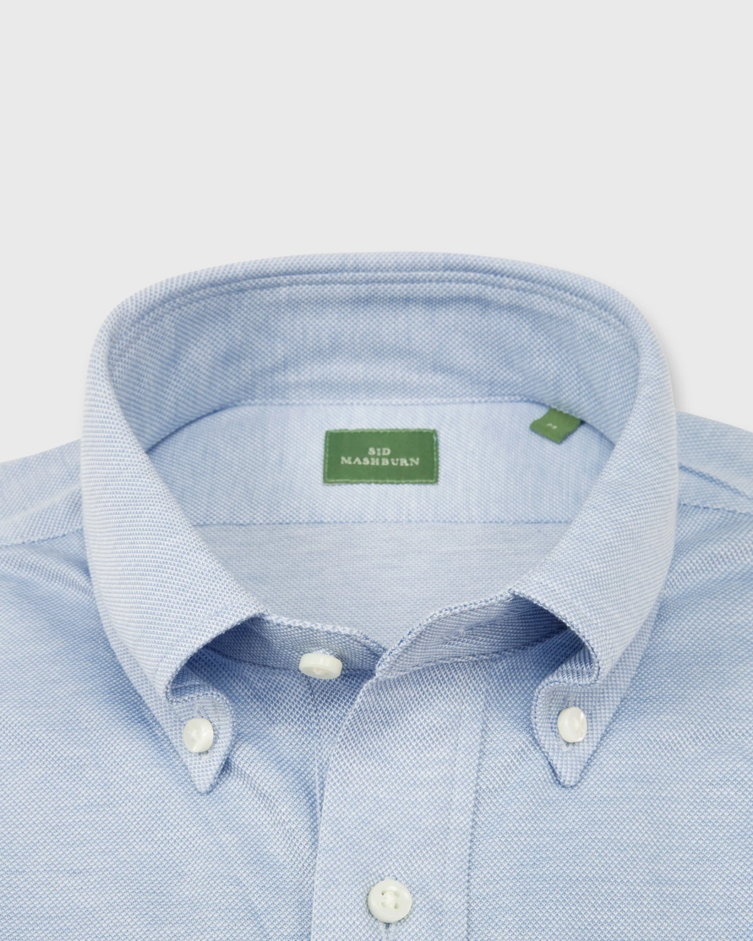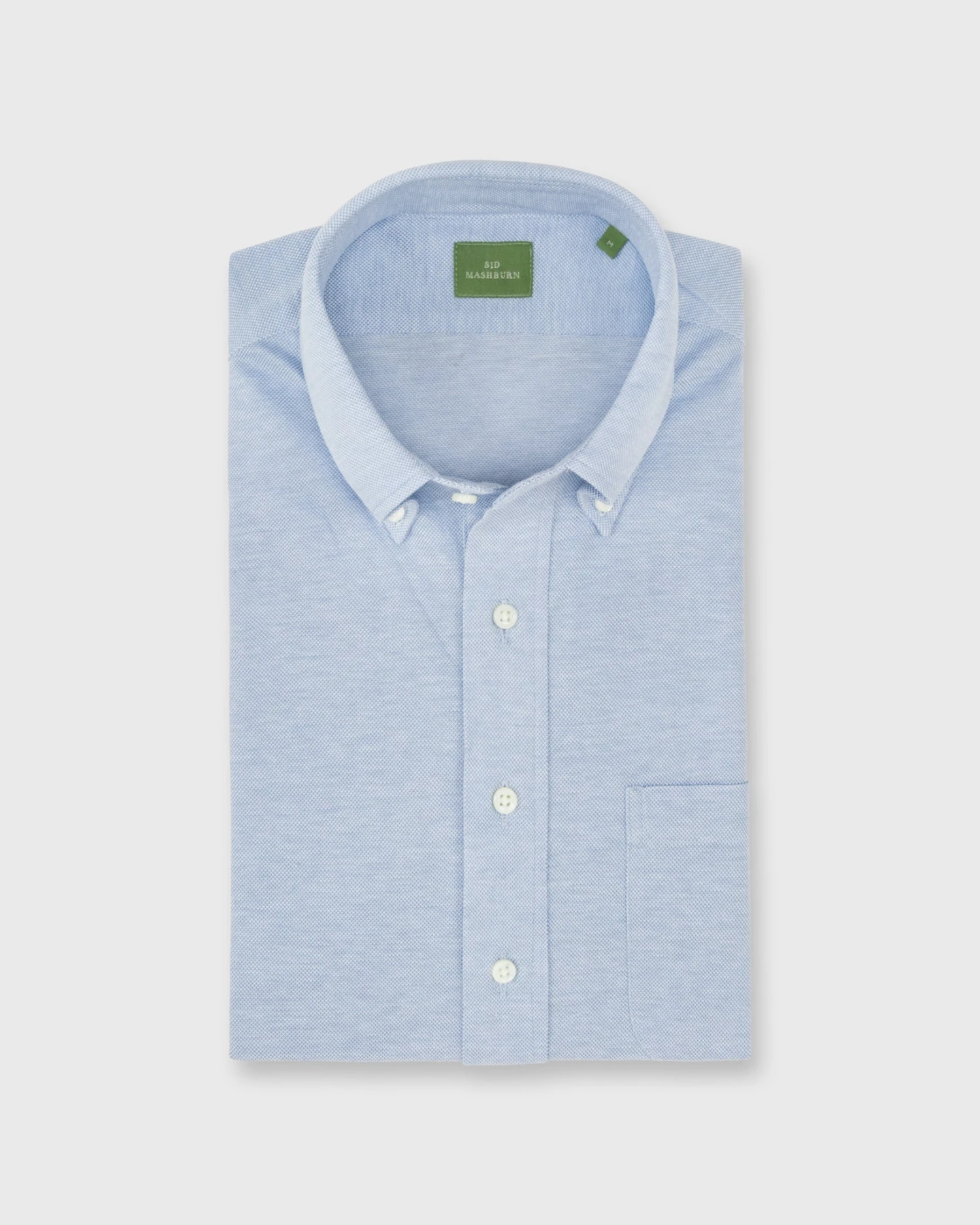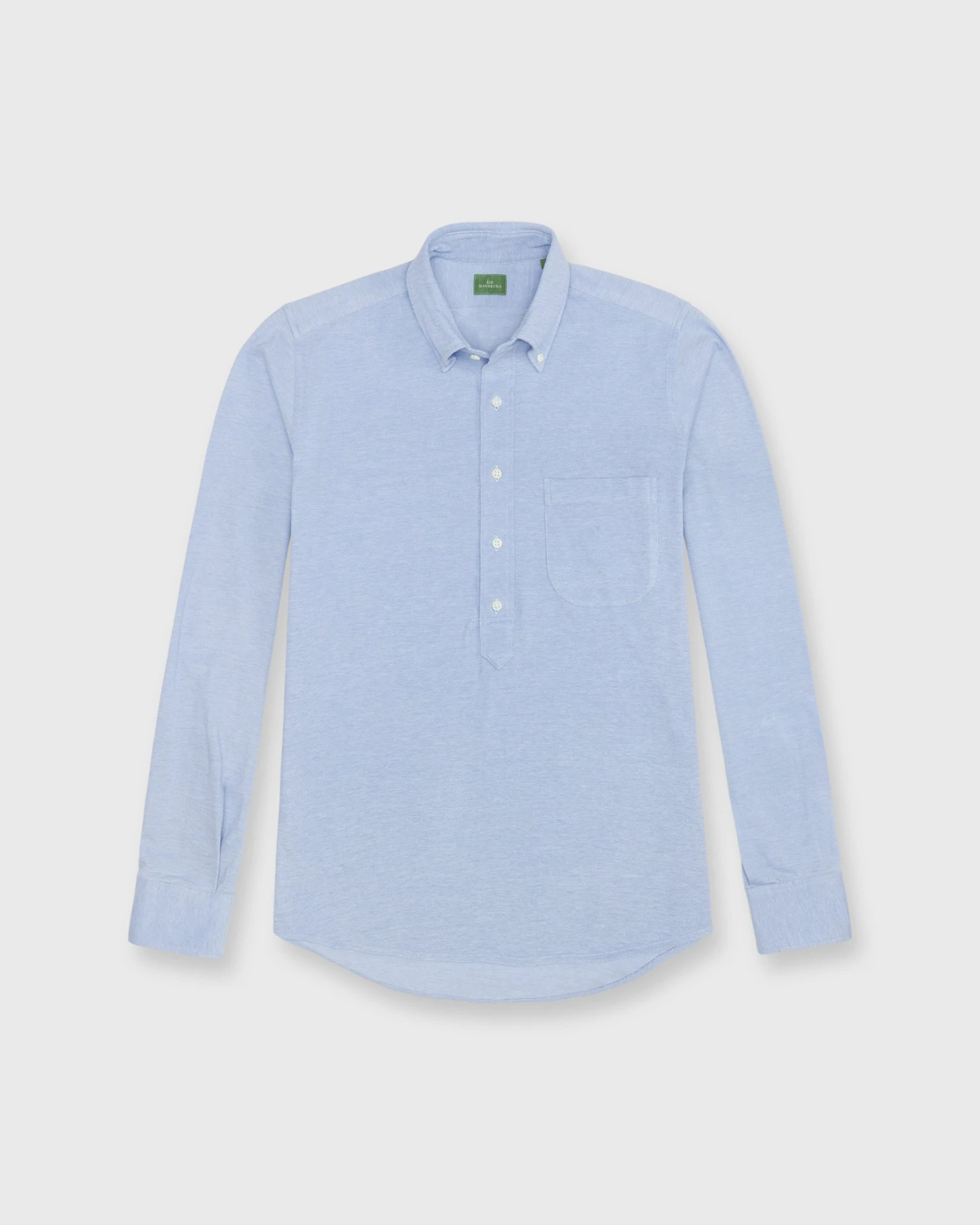 Knit Button-Down Popover Shirt In Sky Blue Oxford Pique