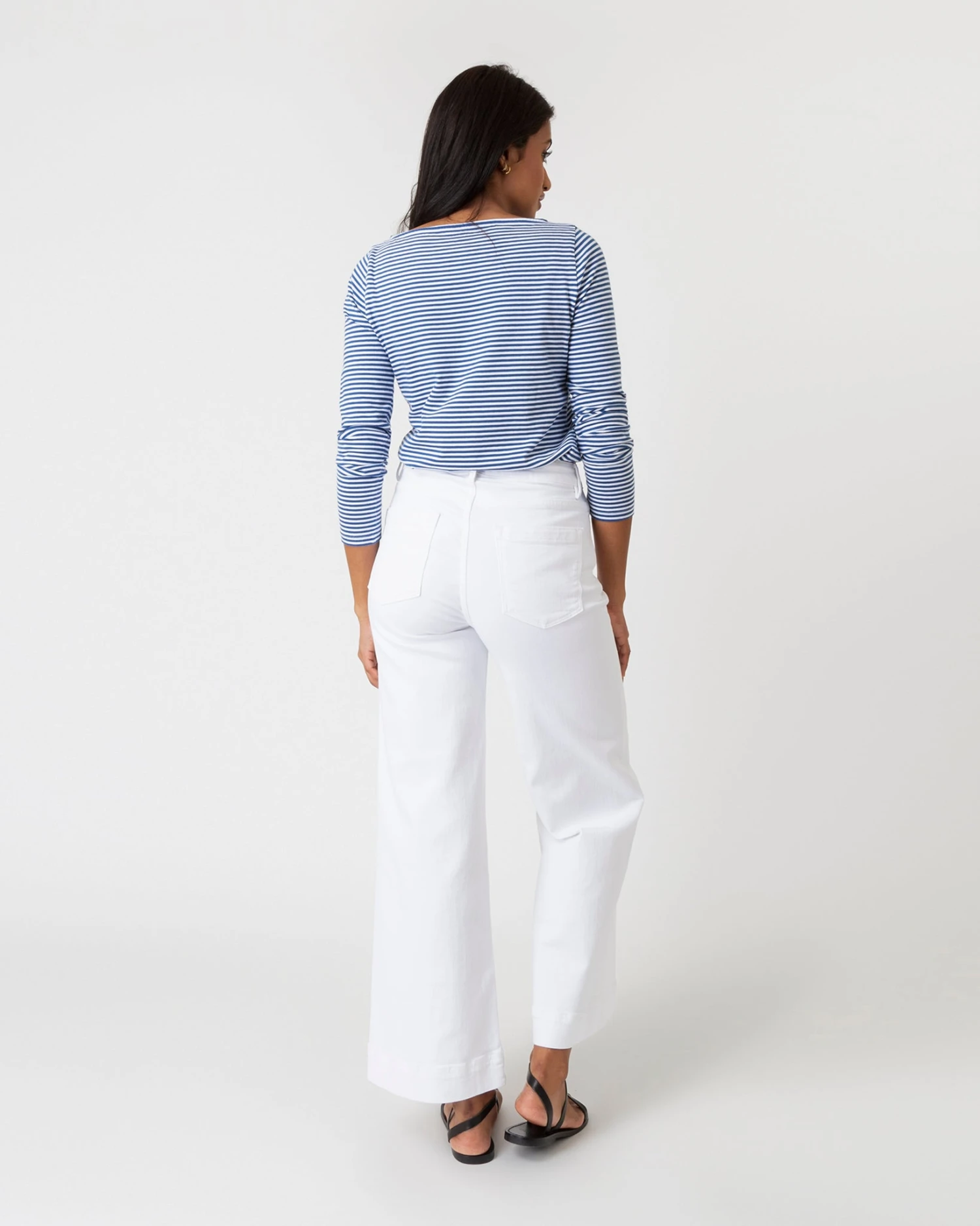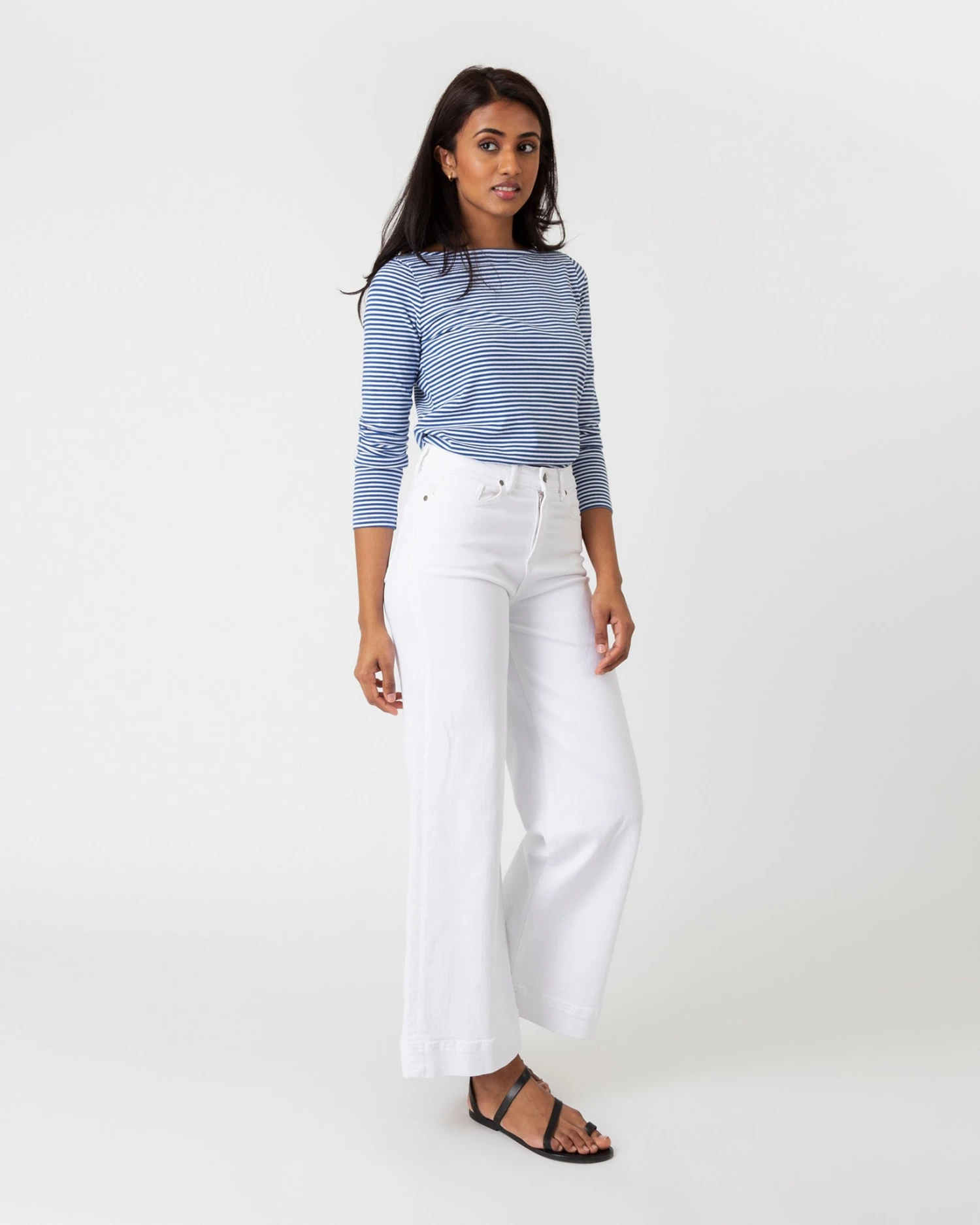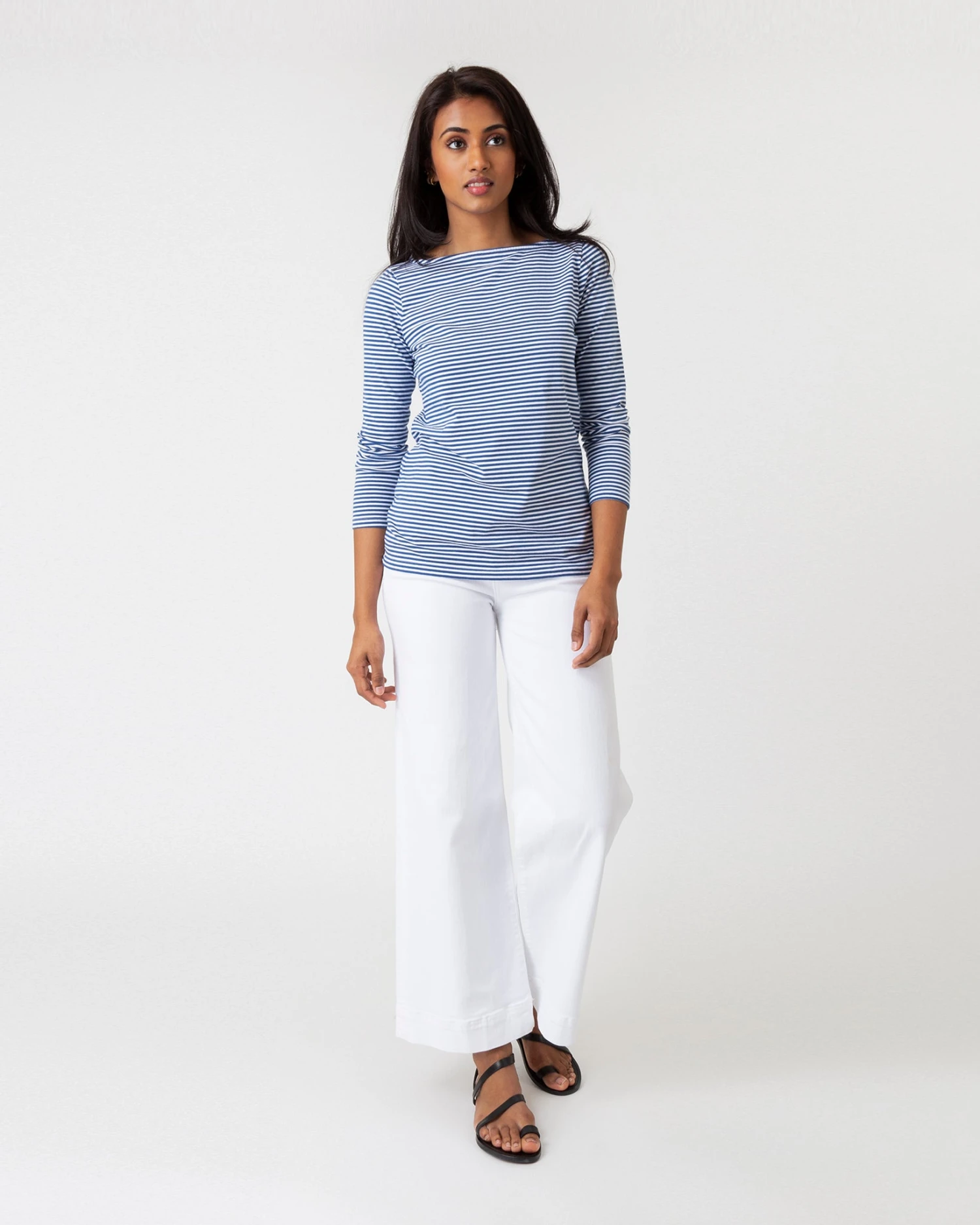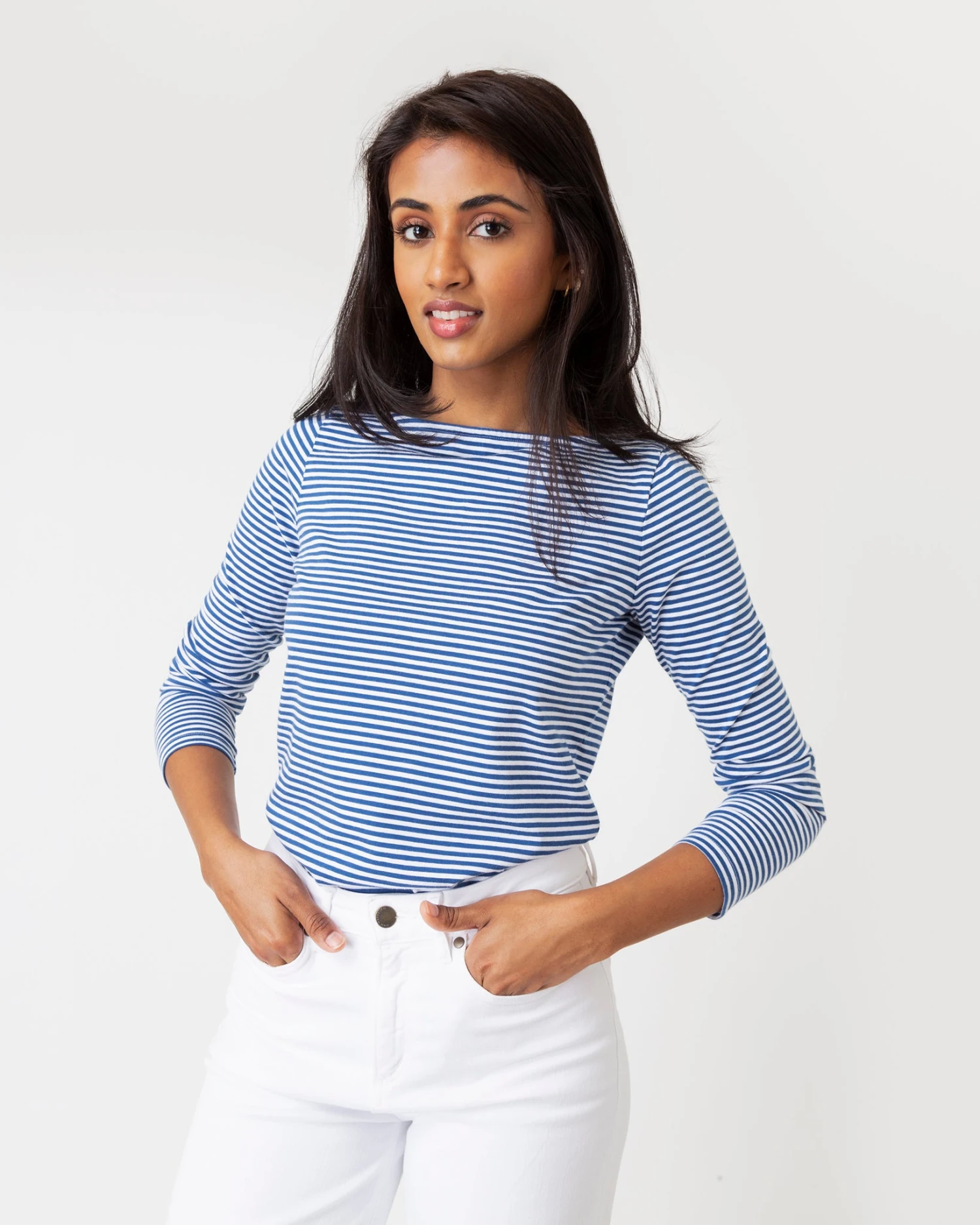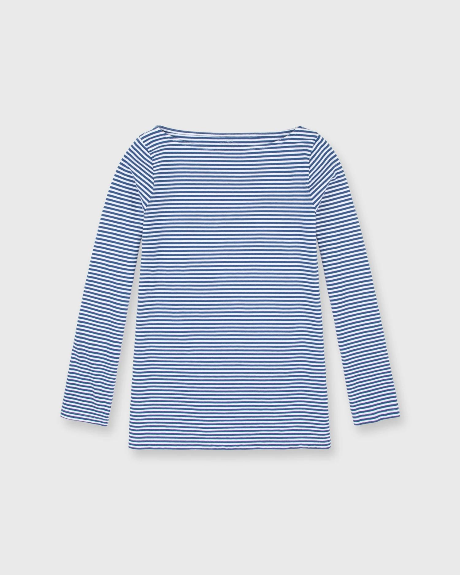 Long-Sleeved Boatneck Tee In French Blue/White Stripe Jersey