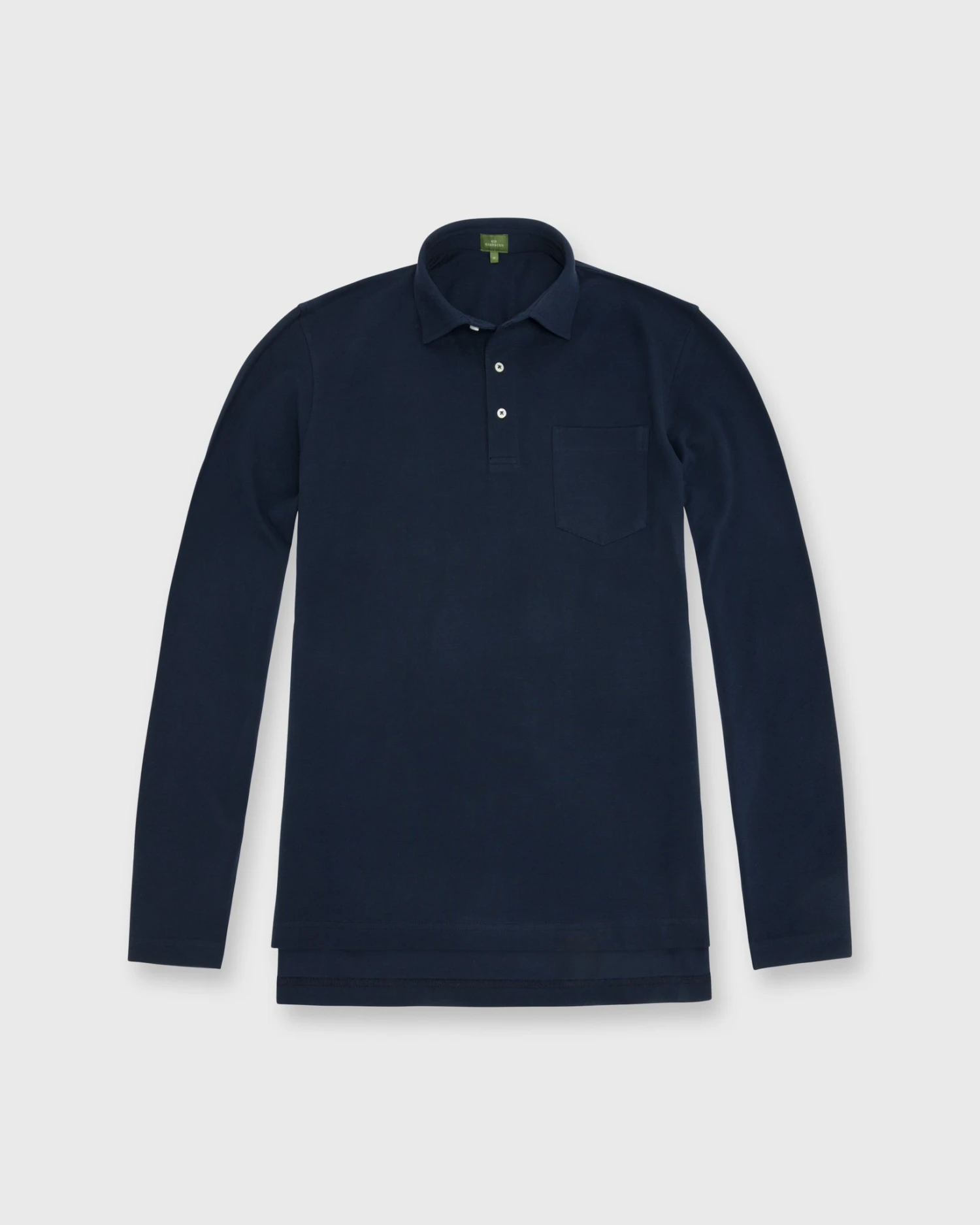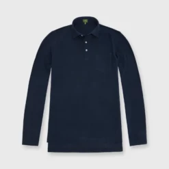 Long-Sleeved Polo In Navy Pima Pique