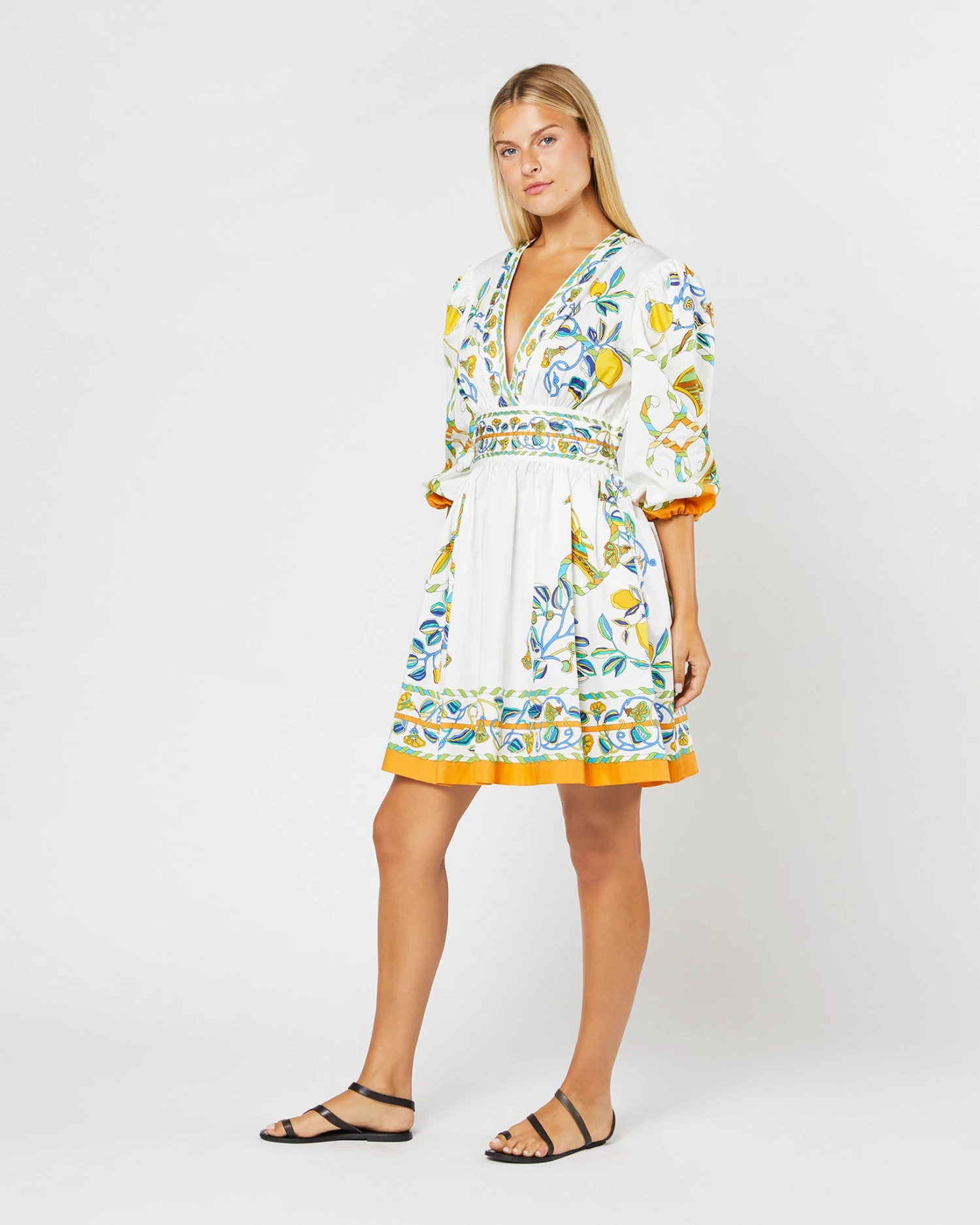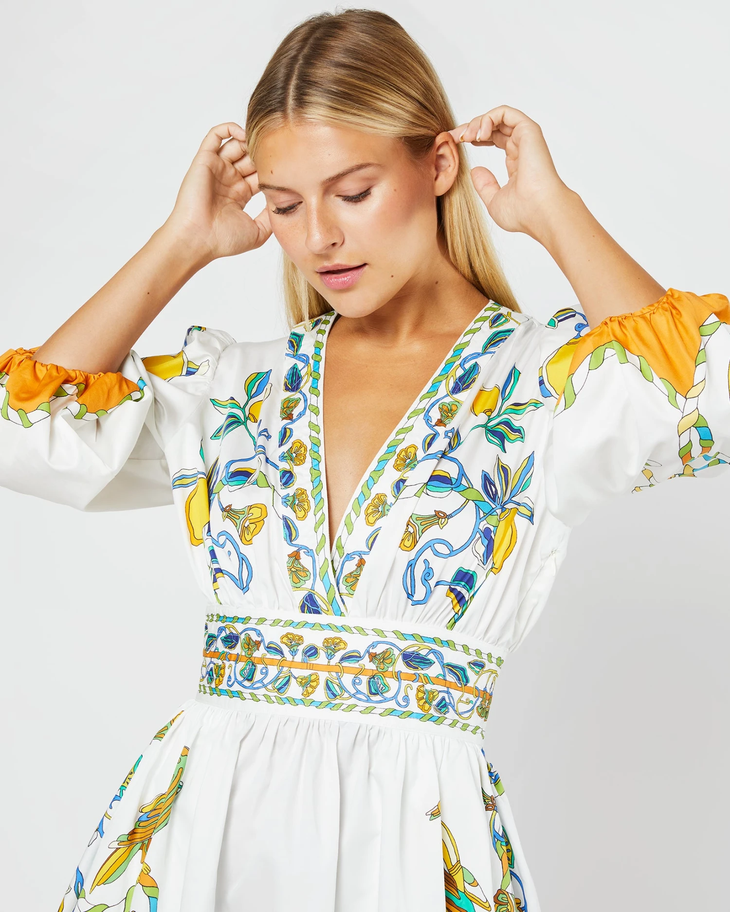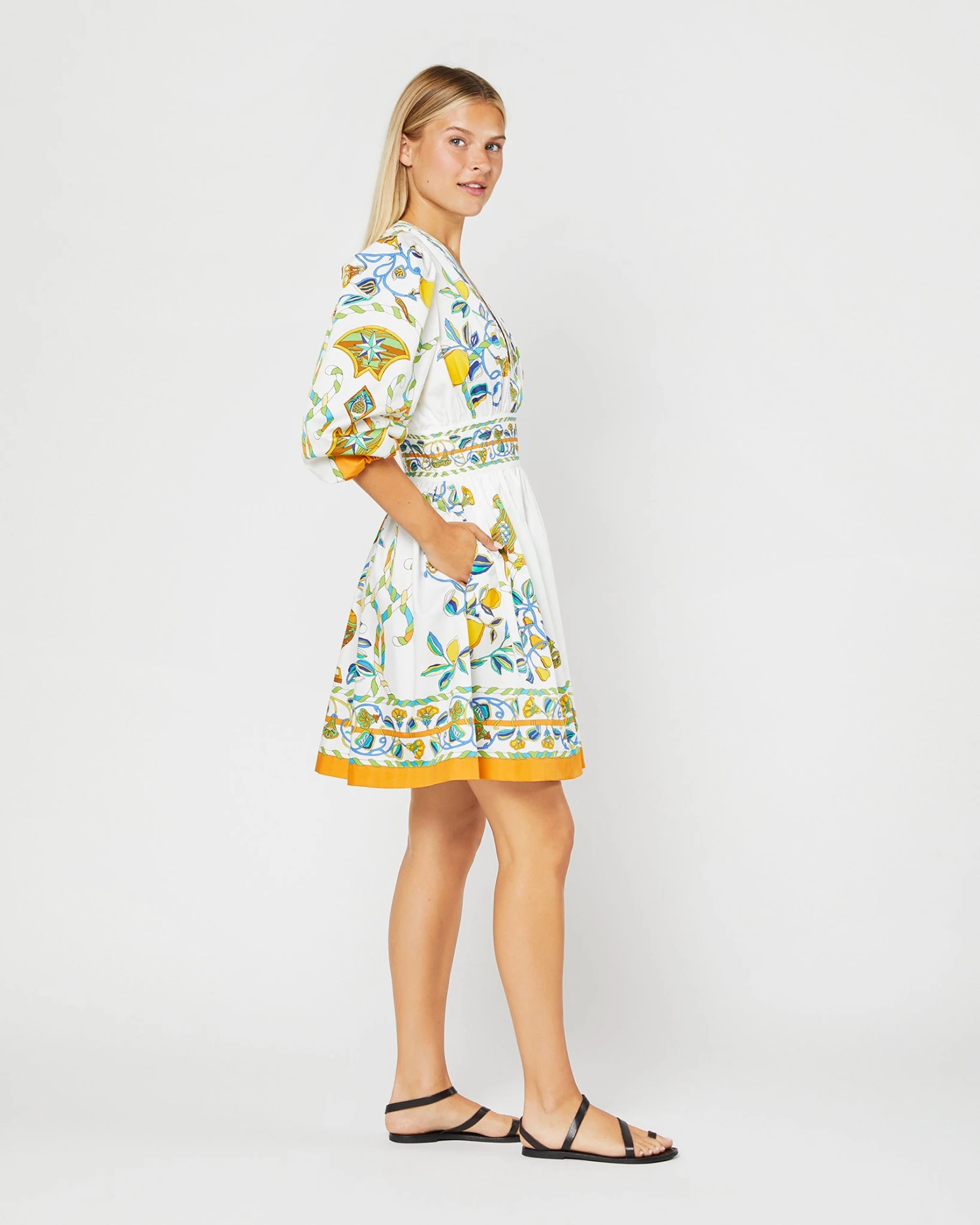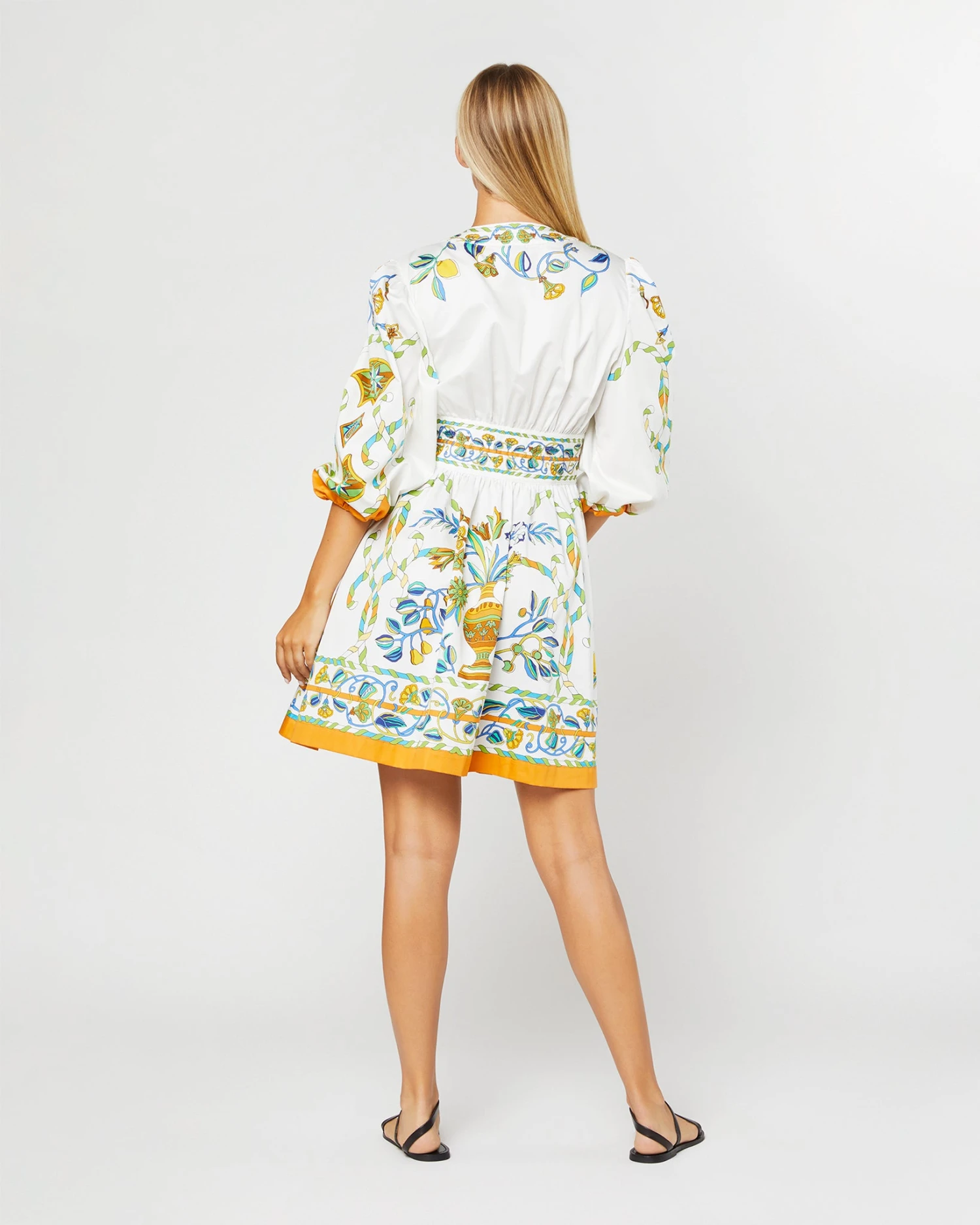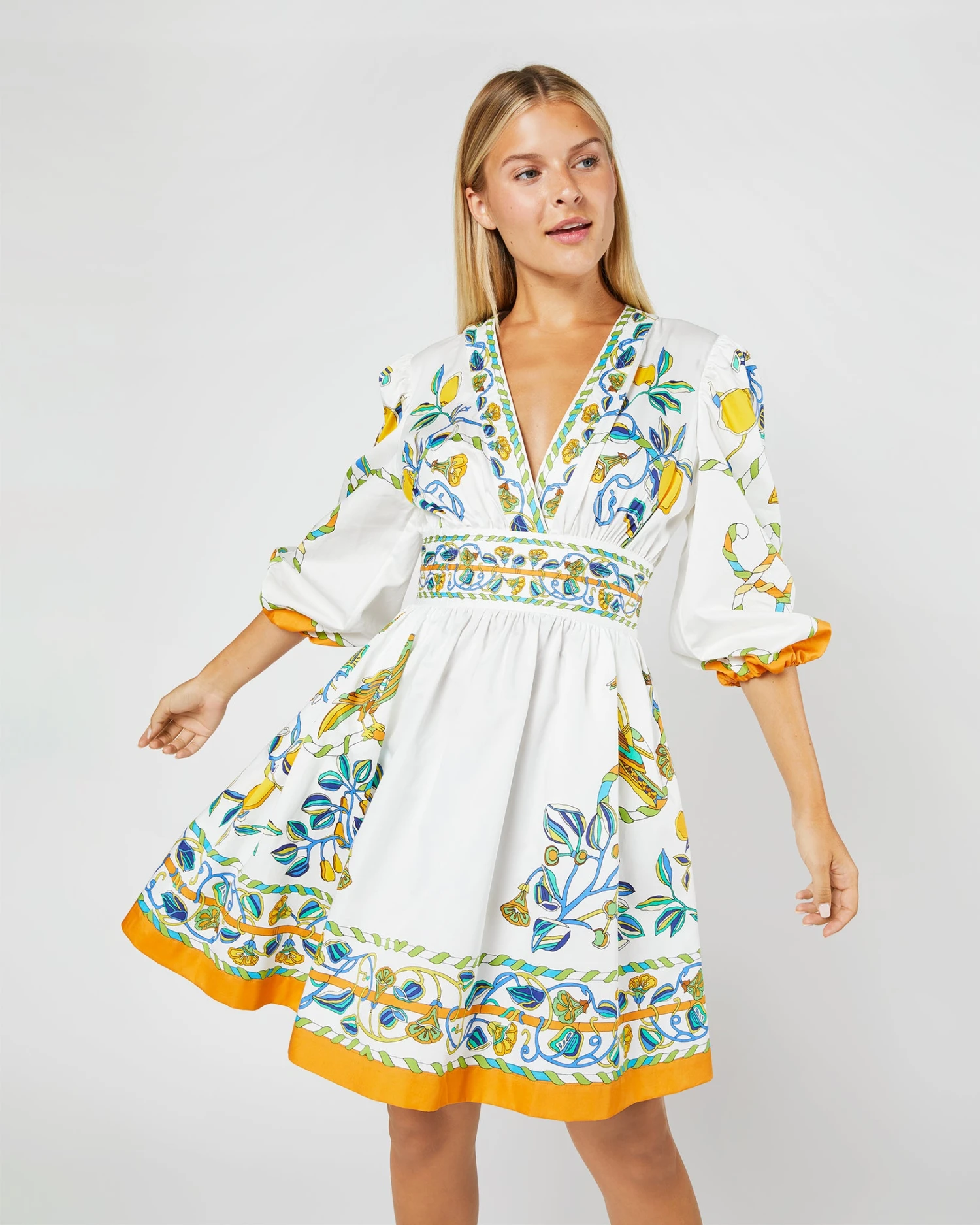 Margherita Dress In Borboni Placed Bianco Cotton Popeline Placée