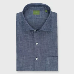 Otto Handmade Sport Shirt In Medium Washed Indigo Chambray