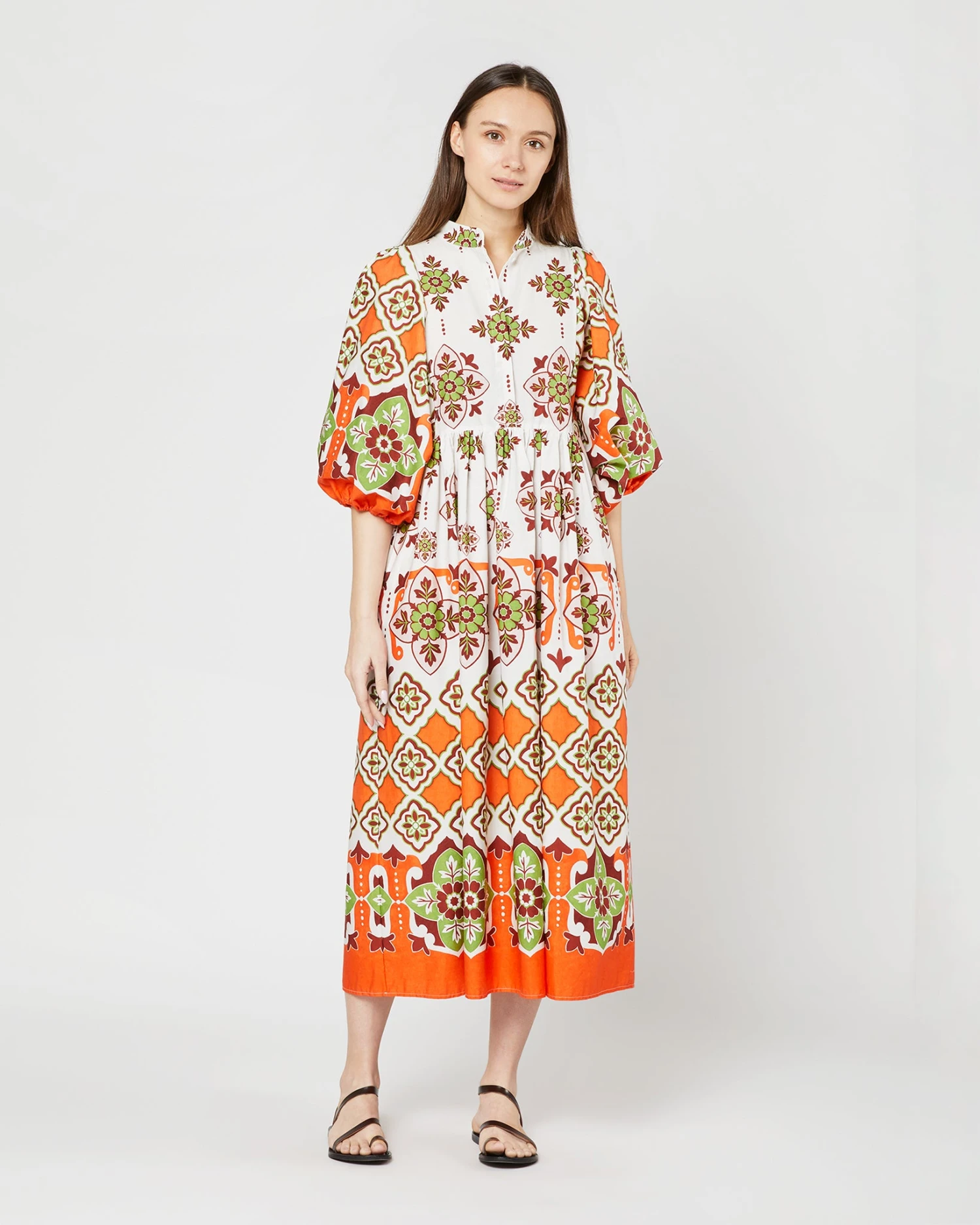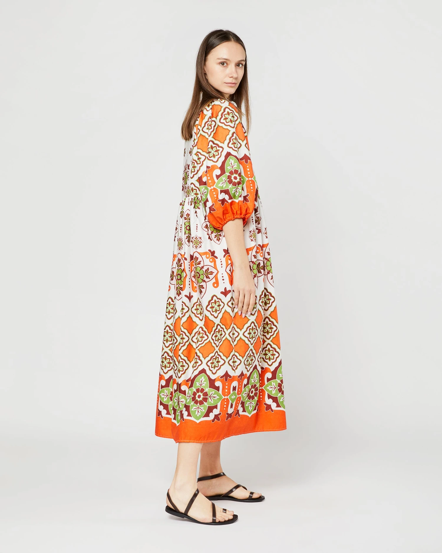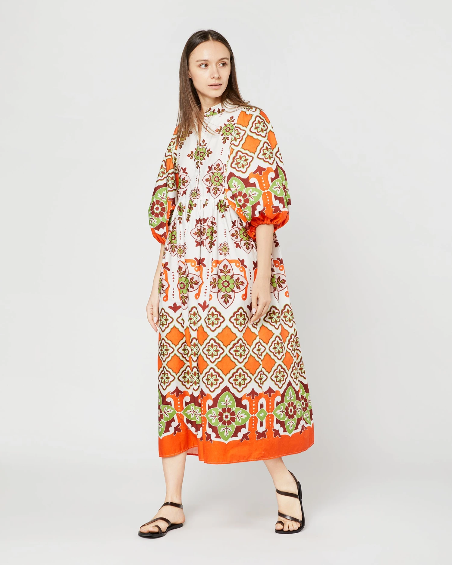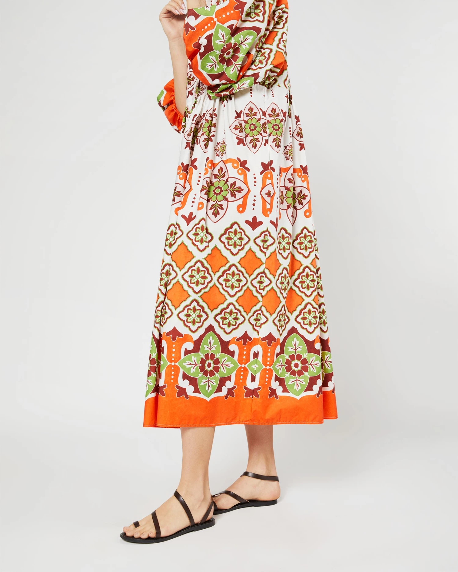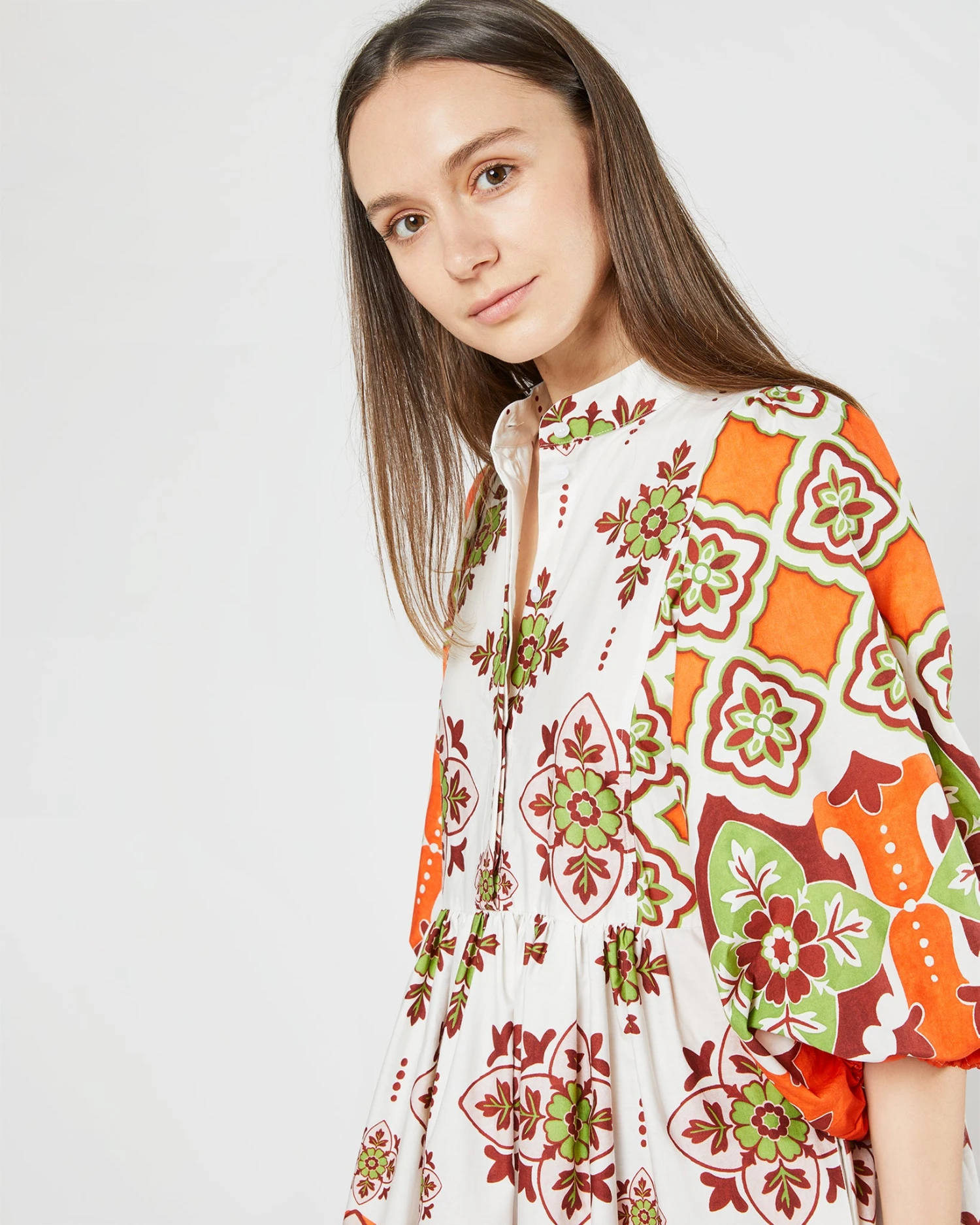 Milan-based La DoubleJ makes party-ready skirts and dresses in reissued vintage fabrics, “distilled through a lens of pure joy, eye-popping print and love of all things maximal.” Sounds about right! The Portofino Dress is as vacation-ready as it sounds, with a mandarin collar, a nipped-in waist, and a full skirt that hits at the ankle. It’s made of printed, summer-weight poplin with a crisper, lighter feel than LDJ’s typical cotton poplin.