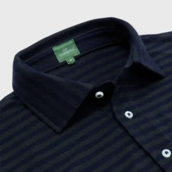 Short-Sleeved Polo In Olive/Navy Stripe Dark Oxford Pima Pique
