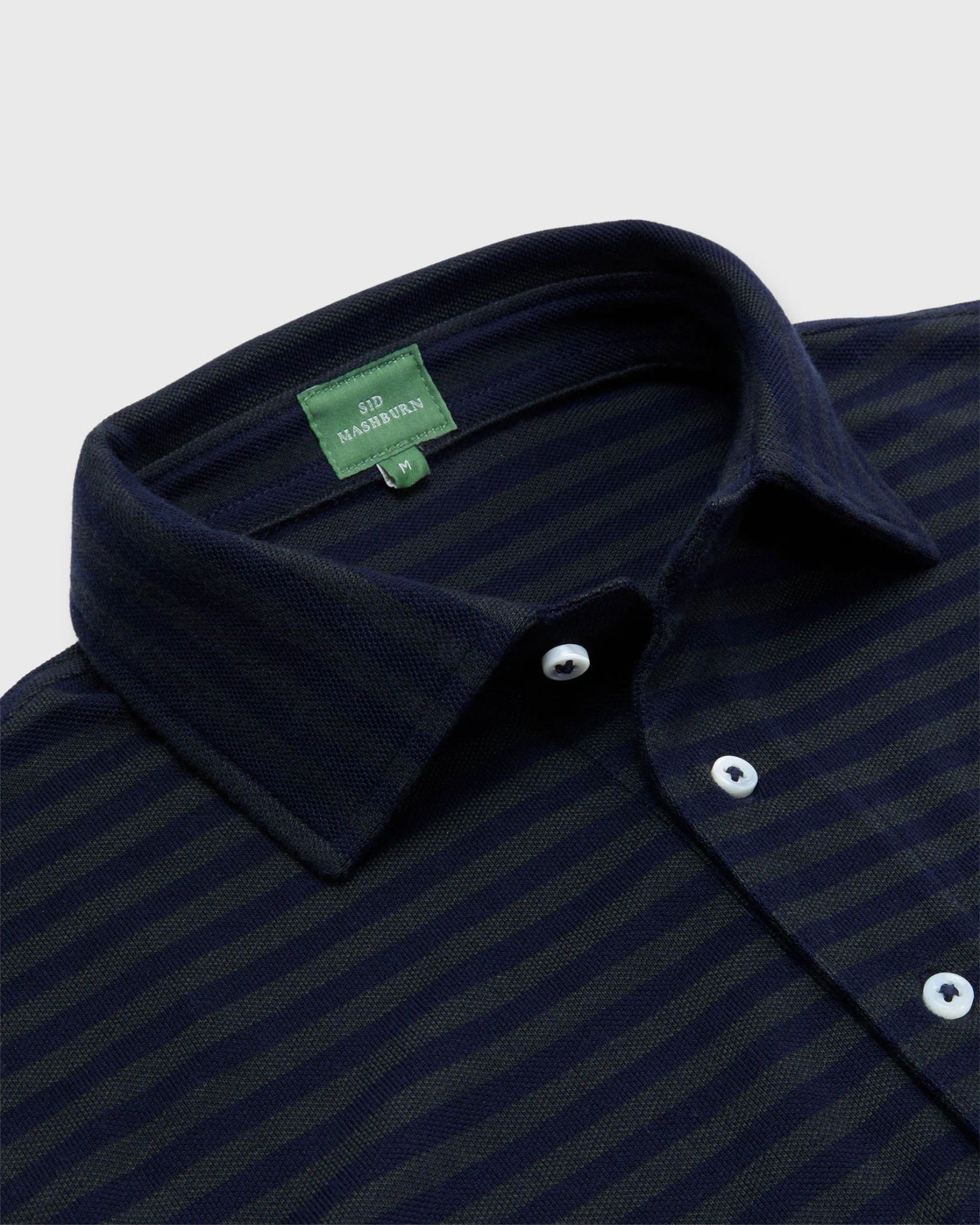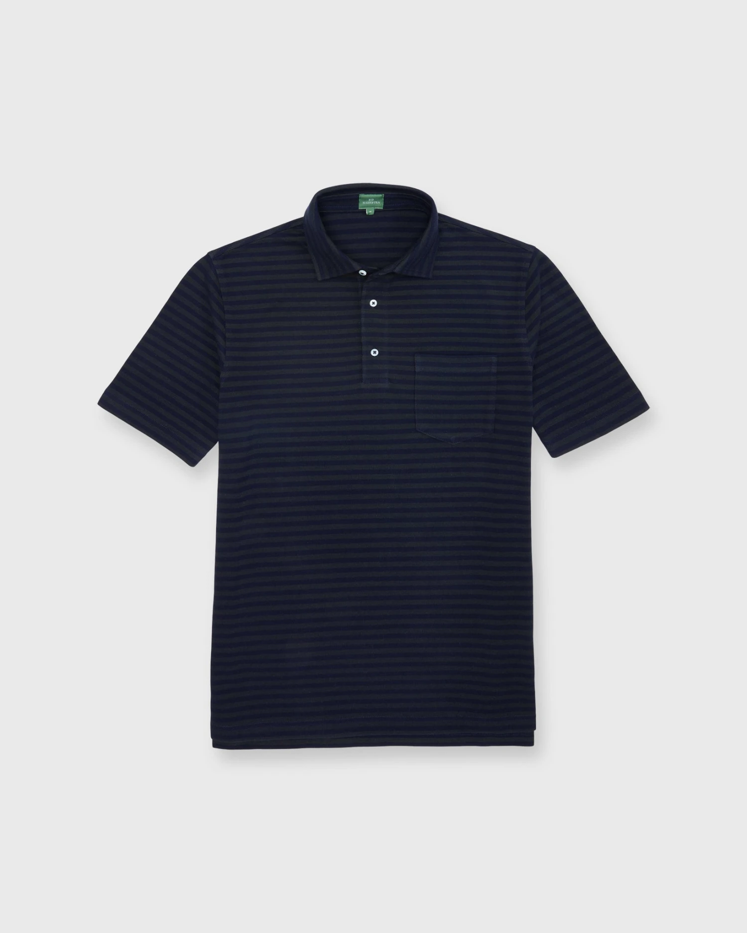 A polo’s one of those things that almost everyone’s got in his closet, but we think ours is kind of special. It’s got a cut-and-sew collar supported by a collar band (just like a sport shirt, which means it can stand up under a jacket,) a tennis tail that can go tucked-in or not, and no branding except for a tiny SM at the lower left hem embroidered in green. This one’s made up in a striped Peruvian pima pique that’s yarn-dyed for some beautiful color variegation. It’s not totally uniform, and that’s the point.