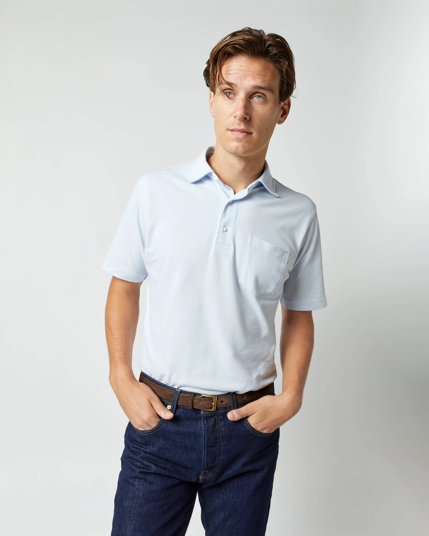 Short-Sleeved Polo In Pale Blue Pima Pique