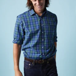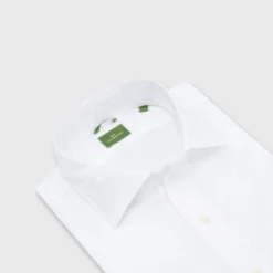 Who can argue with a crisp white dress shirt? This one’s got a modified spread collar with lightweight, fused interlining to lend some structure. (A little inside baseball: the collar point length is designed to sit in perfect harmony with the widths of our ties and our jacket lapels, all 8cm exactly.) Our Slim Fit has a trimmer body and sleeve than our Standard, plus a higher armhole and our usual long-enough-to-stay-tucked-in shirttail. It’s a good choice for guys with narrower shoulders and those who prefer a closer-to-the-body shape. Otherwise, the details are the same: single-needle stitching, 22 stitches/inch, flat-felled seams, and thick, 3.5mm Trocas shell buttons. And while they’re designed to look fantastic with a tie, all of our dress shirts can be opened up and worn more casually — in fact, on weekends, we wear them as sport shirts.