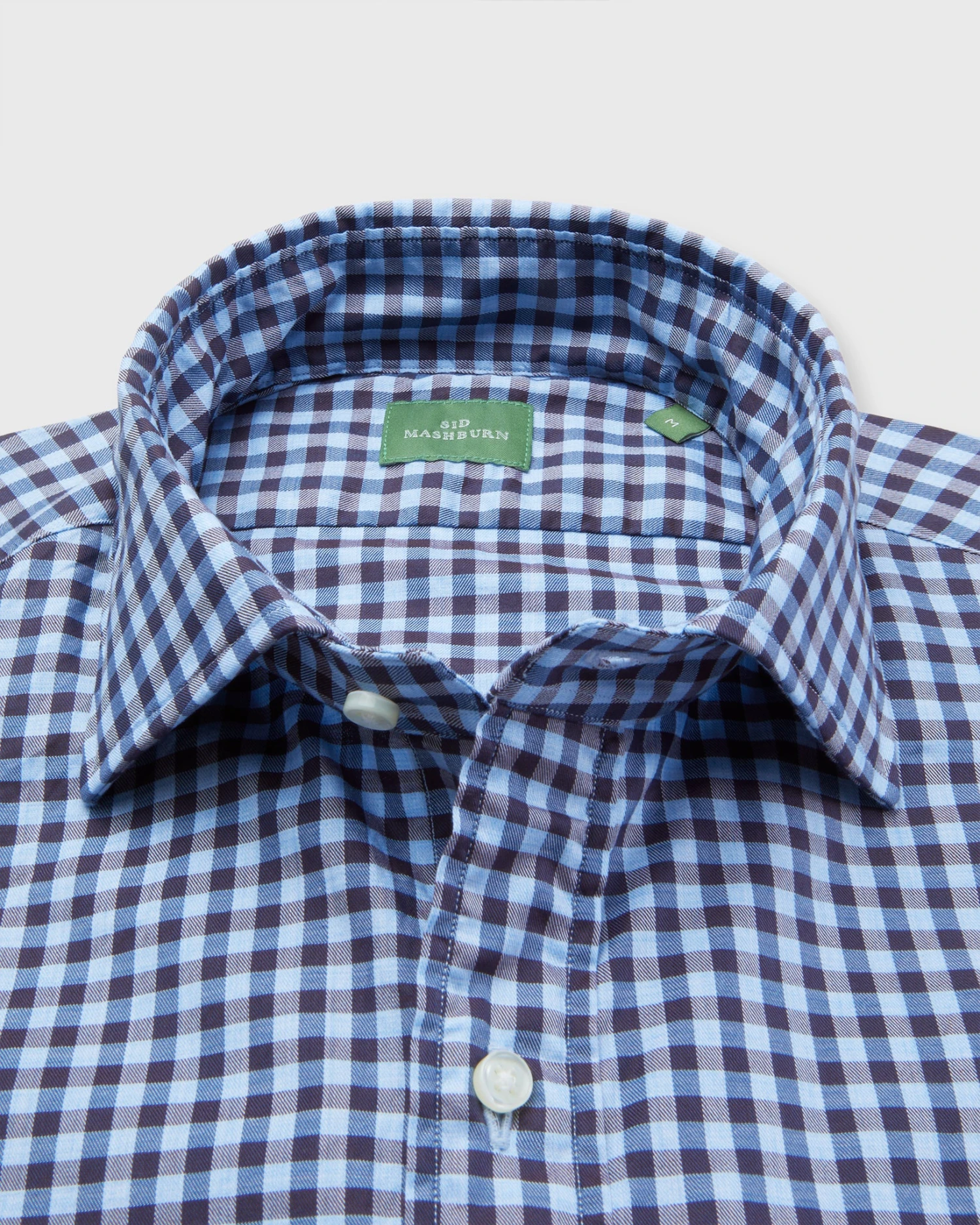 True, we’ve been running gingham shirts since day one, but this one feels a little more fall-weather-appropriate without the typical pop of white in the ground. It’s got a soft, modified spread collar that’s nonfused for a more relaxed look. As always, the cut is slim but never skinny, with a high armhole for mobility and a long-enough-to-stay-tucked-in shirttail. (Sid likes it this way, but you can always get it shortened.) It’s made with single-needle stitching, 22 stitches/inch, flat-felled seams, and thick, 3.5mm Trocas shell buttons.