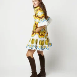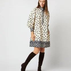 In-store favorite Ulla Johnson makes feminine, bohemian pieces that are heavy on handcraft and special details. The Cecile Dress has puff sleeves, a smocked bodice, and an A-line skirt. It’s made up in a moonflower-printed cotton poplin that feels like a perfect fall floral.