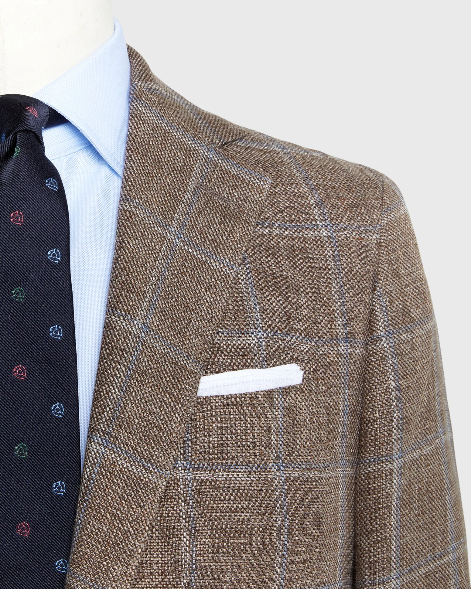 An especially beautiful springtime jacket made of Italian windowpane hopsack. The No. 2 jacket make is fully canvassed, with a lightweight, single-layer canvas that’ll mold and meld to your body (in a sportier, easier way than our more structured Nos. 3, 4, or 5,) with pickstitched, spalla camicia shirtsleeve construction. And our Virgil model has a natural shoulder, a 3-roll-2 lapel, and a shorter body with no front darts at all. Think old-school ‘sack jacket,’ but sexier. It’s got a slightly more American feel than the Kincaid or the Landry, but just like all of our tailored clothing, it’s designed to take you from Mississippi to Manhattan to Milan without looking or feeling out of place.
