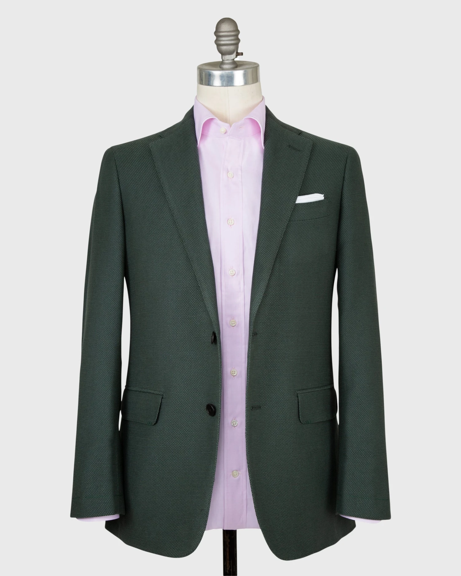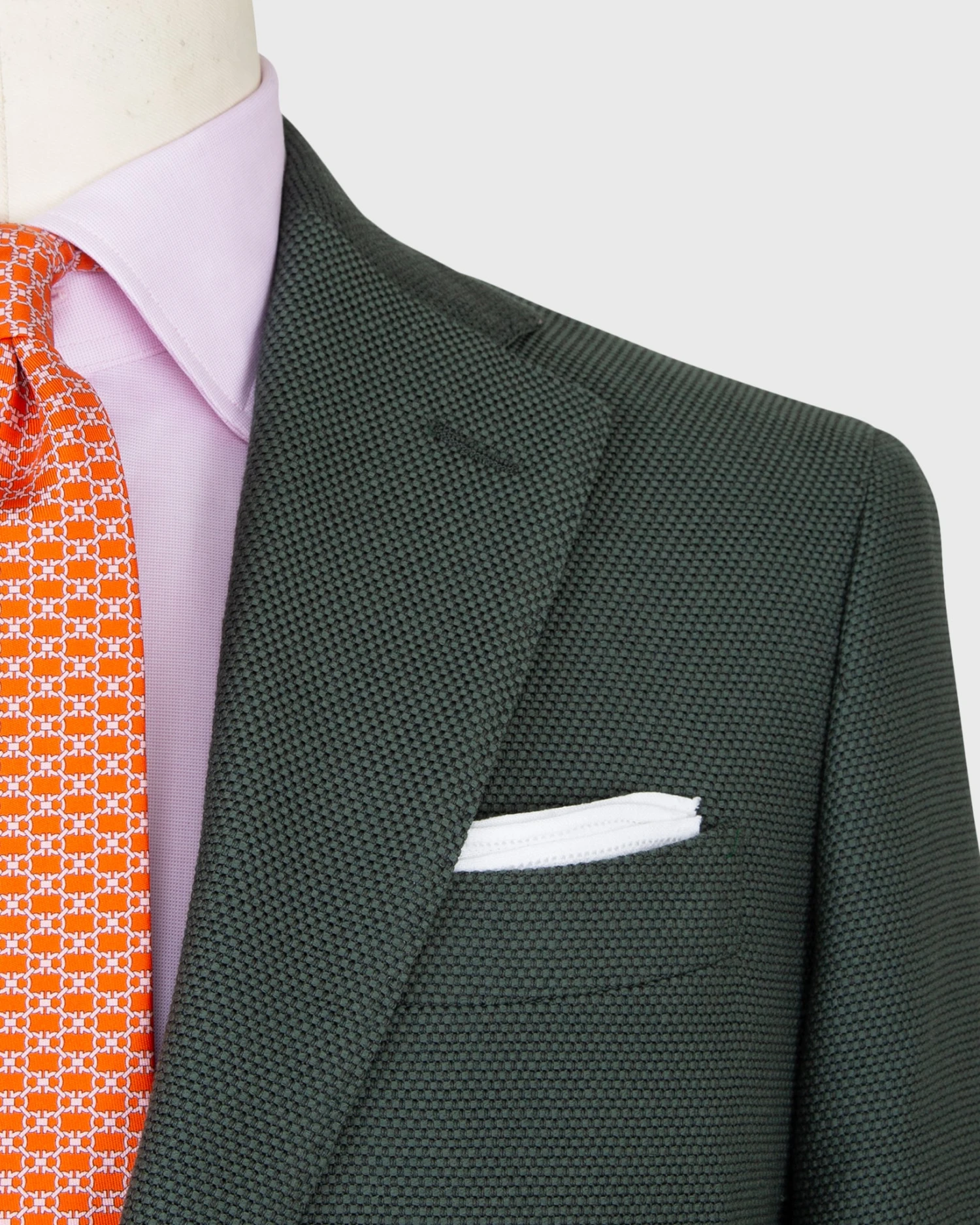 Leno-weave hopsack makes this one of the hardest-working jackets we’ve got… fantastically durable for four-season wear, with a slightly open weave and a special texture. (In fact, we developed the fabric ourselves, so you won’t find it anywhere else.) It’s been garment-dyed to a sprucey shade of green that’s easier to wear than you think. The No. 2 jacket make is fully canvassed, with a lightweight, single-layer canvas that’ll mold and meld to your body (in a sportier, easier way than our more structured Nos. 3, 4, or 5,) with pickstitched, spalla camicia shirtsleeve construction. And our Virgil model has a natural shoulder, a 3-roll-2 lapel, and a shorter body with no front darts at all. Think old-school ‘sack jacket,’ but sexier. It’s got a slightly more American feel than the Kincaid or the Landry, but just like all of our tailored clothing, it’s designed to take you from Mississippi to Manhattan to Milan without looking or feeling out of place.